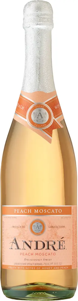 Andre Peach Moscato Sparkling Wine is a sweet Champagne bursting with flavors of sweet peach, honey and hints of orange. Make Andre Sparkling wine your go-to bubbly for girls' nights and parties. Enjoy it on its own or alongside ice cream for a decadent treat. Made from muscat grapes, this California wine is refreshing with a crisp finish. Serve this sparkling Moscato wine chilled, and transform any get together into a party.